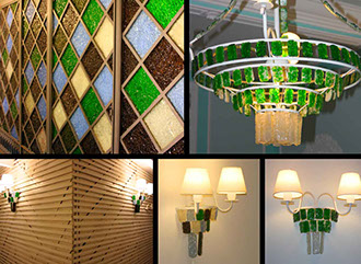 "EmCarneViva" Restaurant, Porto Portugal, fused recycled bottle glass panels, lamps and components.
