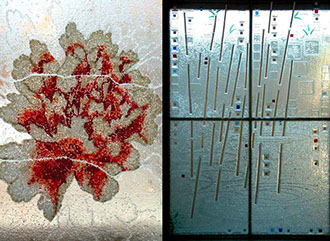 - Silver Bambu, textured fused glass with silver inclusion (Right).