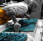 Creating a design object out of pieces of glass, directly into the mould, allowing my hands some kind of freedom/independence, and placing myself as an observer/critic, loving the result, or not, and just dismantling and reassembling until satisfaction occurs. I turn the kiln on and maybe, just maybe, tomorrow warm art will emerge and make somebody happy.